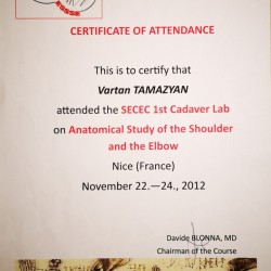 - 1-й анатомический курс хирургии плечевого и локтевого суставов. Ницца, Франция.