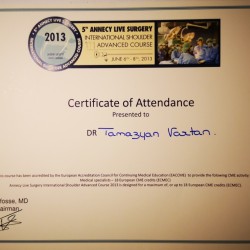 - Курс хирургии плечевого сустава (Nice Shoulder Course), Ницца, Франция.