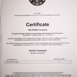 - 16 конгресс Европейского общества хирургии коленного сустава, спортивной травматологии и артроскопии. Амстердам.