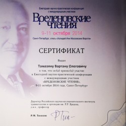 - Ежегодная научно-практическая конференция с международным участием «Вреденовские чтения» Участник конференции. Санкт-Петербург