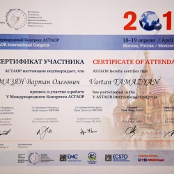 - V международный конгресс АСТАОР 2019. Москва. Участник конгресса.