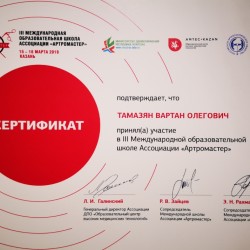 - III МЕЖДУНАРОДНАЯ образовательная школа АРТРОМАСТЕР 2019. Участник школы