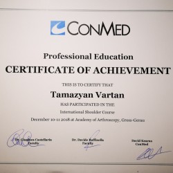 - Кадаверный курс артроскопии плечевого сустава с применением материалов компании «Conmed». Гросс-Герау. Германия.