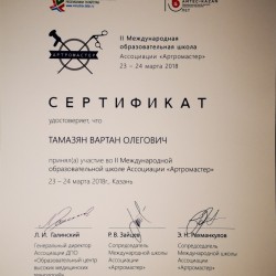 - II МЕЖДУНАРОДНАЯ образовательная школа АРТРОМАСТЕР 2018. Участник школы