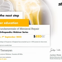 - Июнь 2022 года. г.Стамбул. EEMEA Arthroscopic meniscal repair course. InSITE Centre. Stryker.